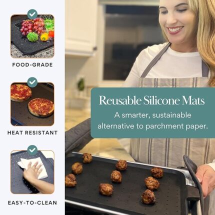 Beckon Ware | USA | Multi-Use Oven Safe Baking Mat; Splatter Screen for Frying Pan – 17.5 x 12.5 Inch that includes handles